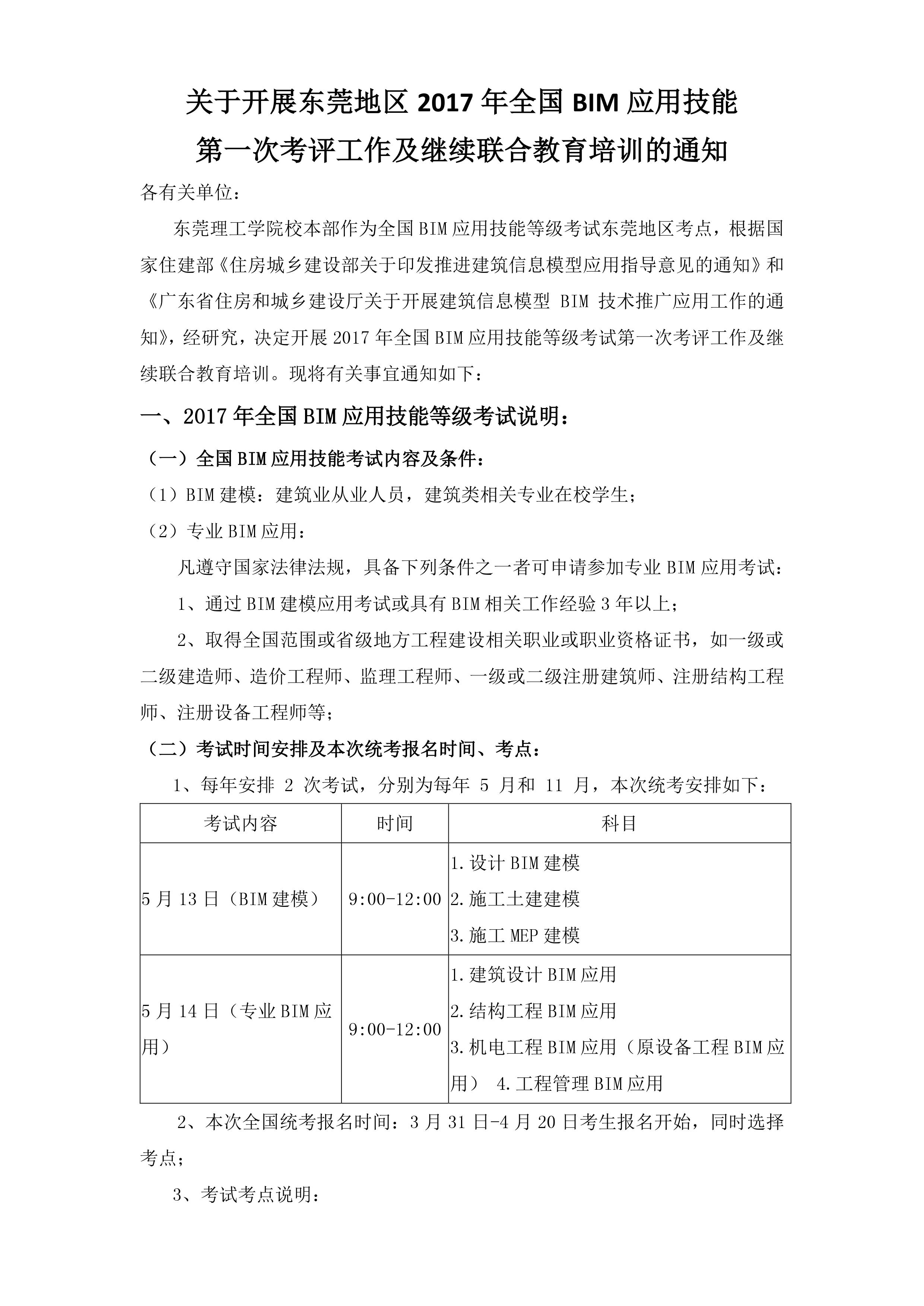 转《关于开展东莞地区2017年全国BIM应用技能第一次考评工作及继续联合教育培训的通知》