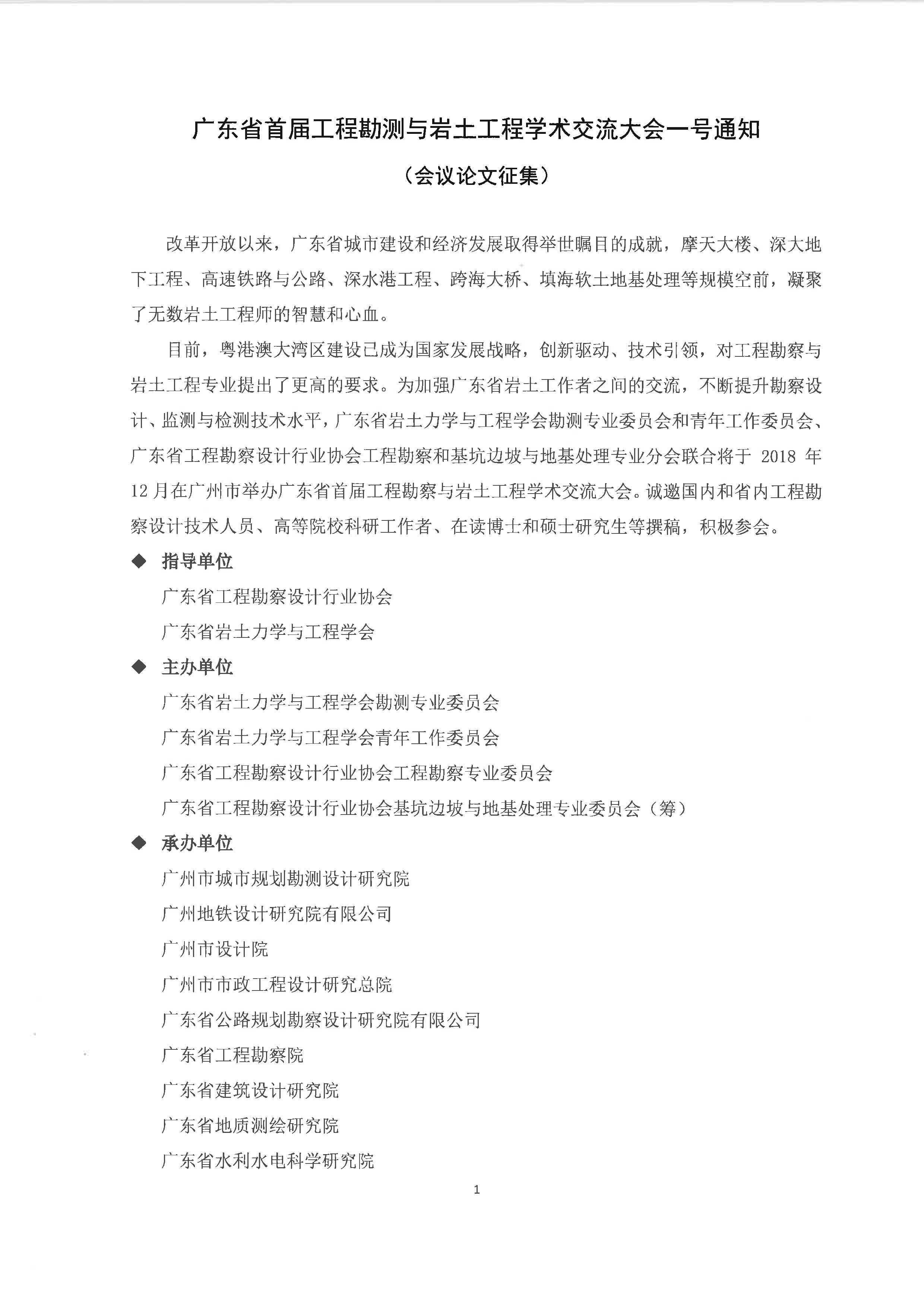 转《广东省首届工程勘测与岩土工程学术交流大会一号通知(会议论文征集)》