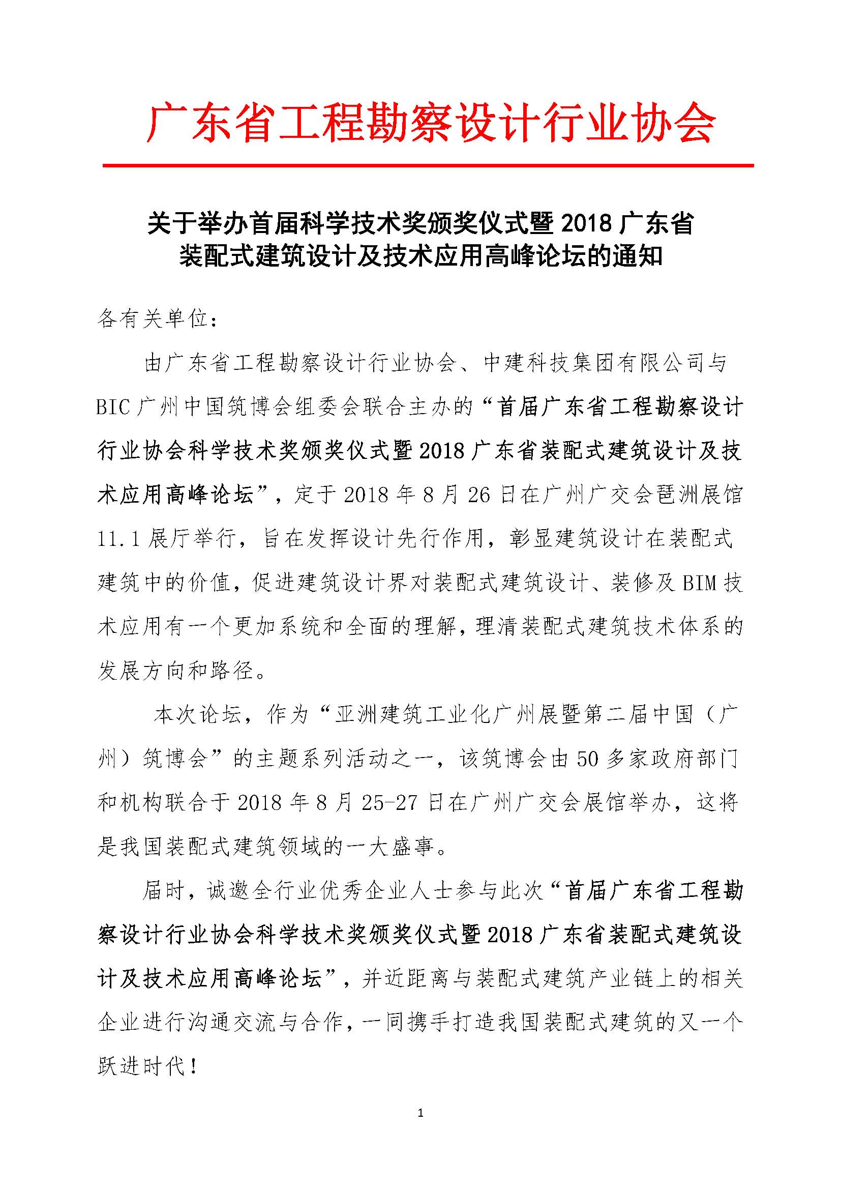 转《关于举办首届科学技术奖颁奖仪式暨2018广东省装配式建筑设计及技术应用高峰论坛的通知》