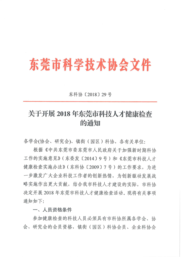 转《关于开展2018年东莞市科技人才健康检查的通知》