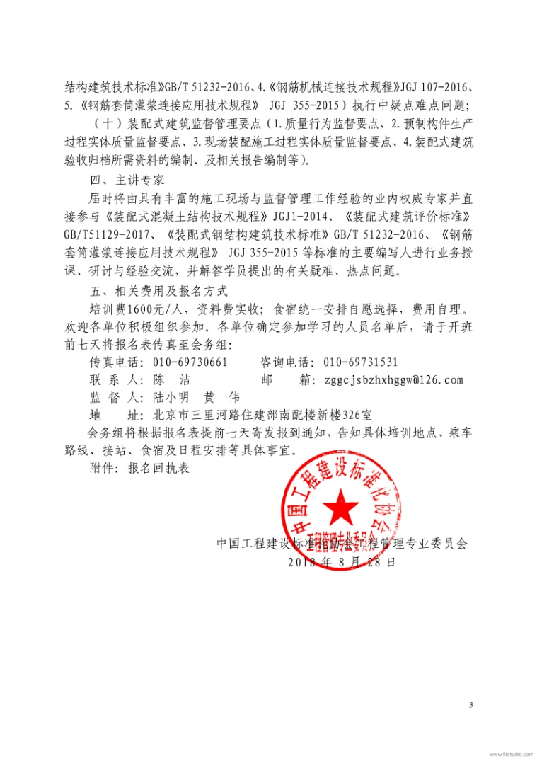 转《关于举办“2018年装配式建筑(混凝土结构、钢结构)新技术、新标准宣贯与施工质量控制和竣工验收及监督管理要点关键技术应用培训班”的通知》