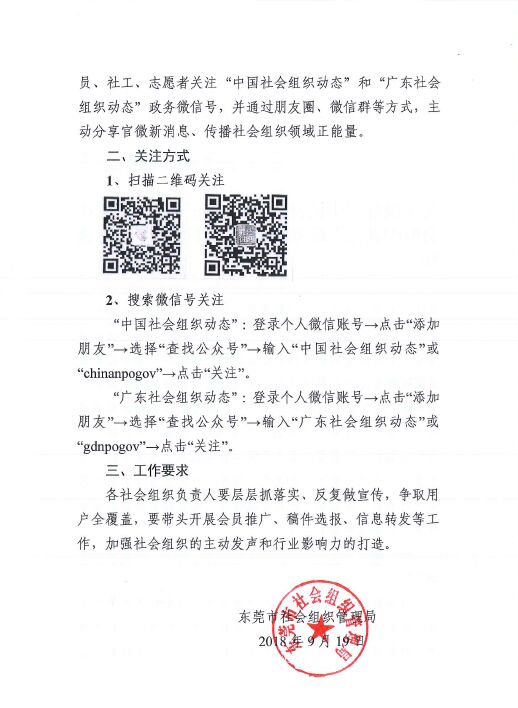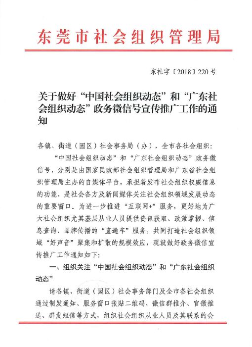 转《关于做好“中国社会组织动态”和“广东社会组织动态”政务微信号宣传推广工作的通知》