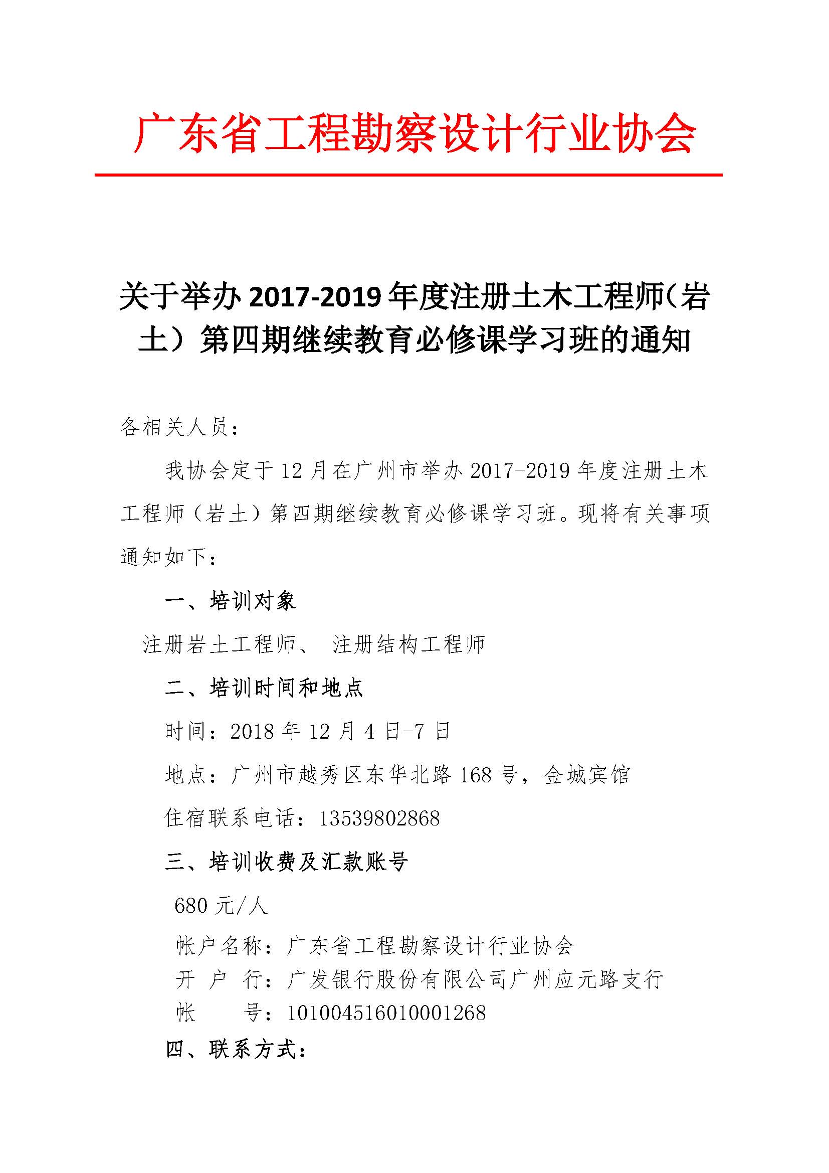 转《关于举办2017-2019年度注册土木工程师(岩土)第四期继续教育必修课学习班的通知》