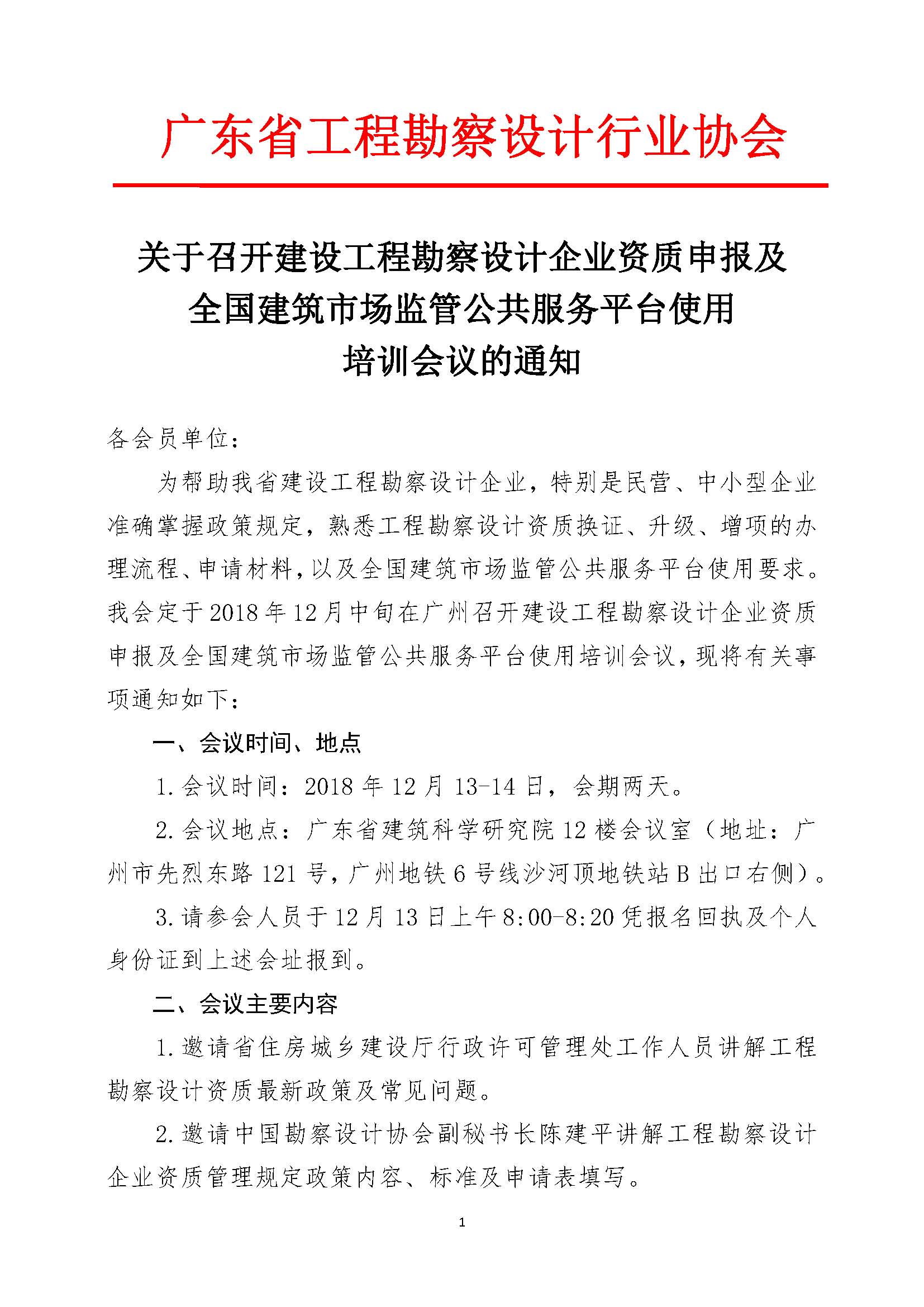转《关于召开建设工程勘察设计企业资质申报及全国建筑市场监管公共服务平台使用培训会的通知》