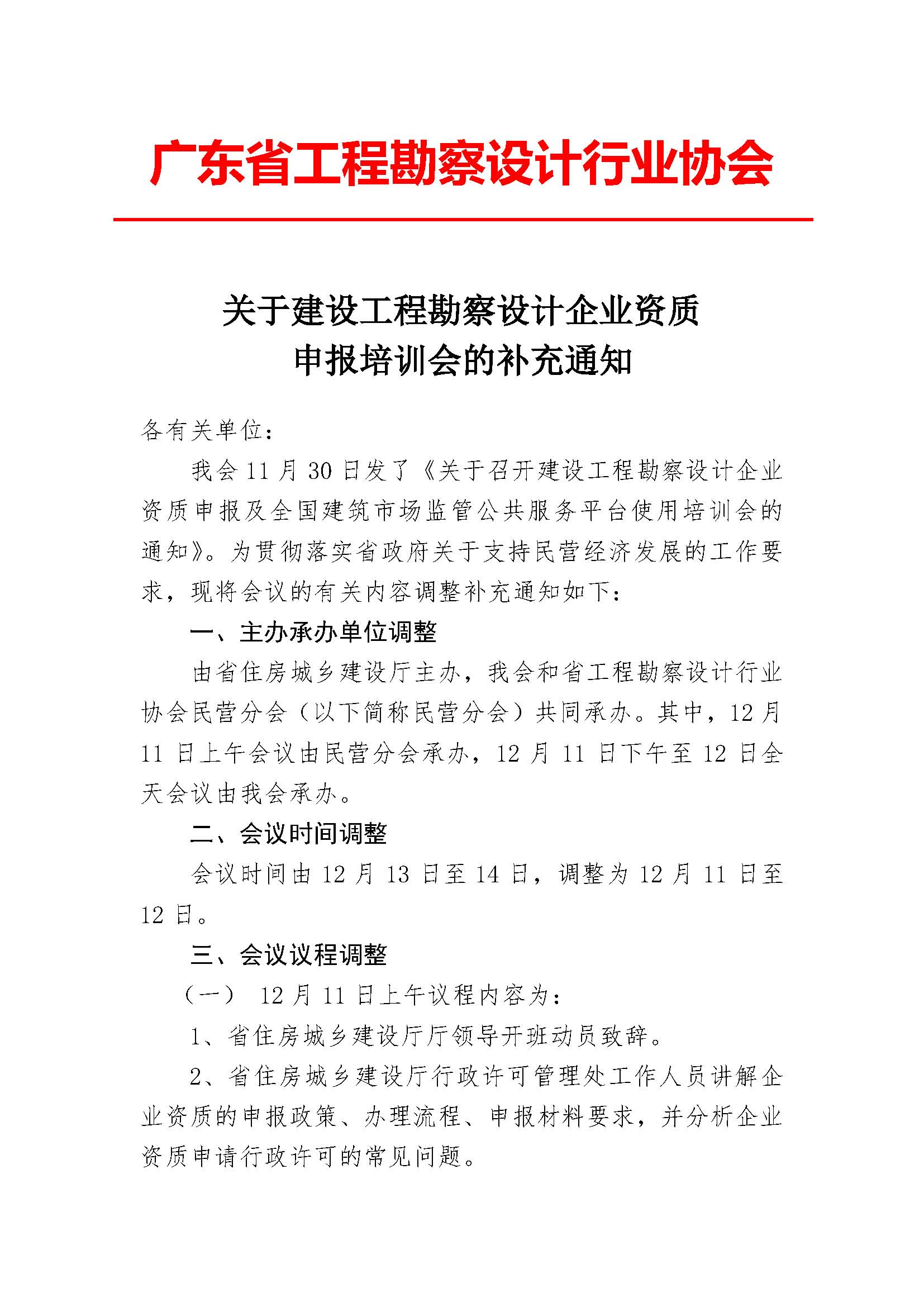 转《关于建设工程勘察设计企业资质申报培训会的补充通知》