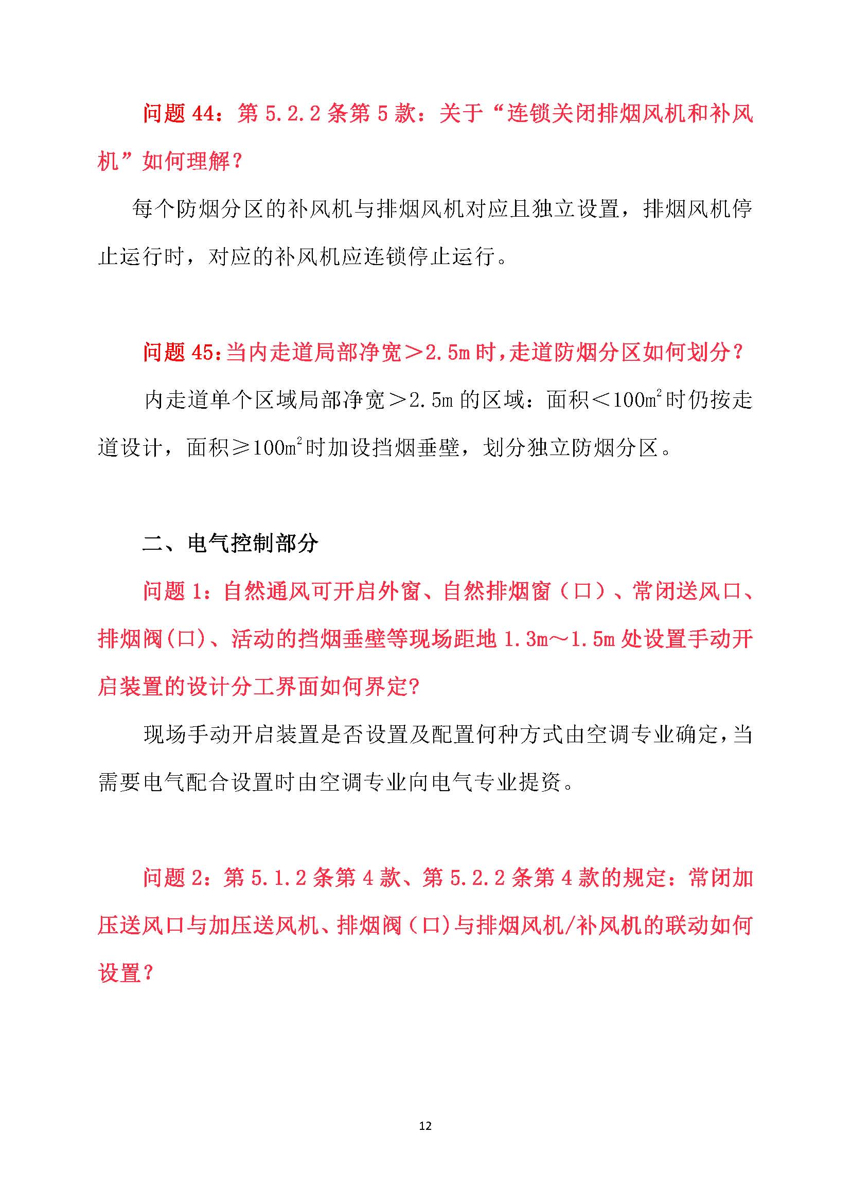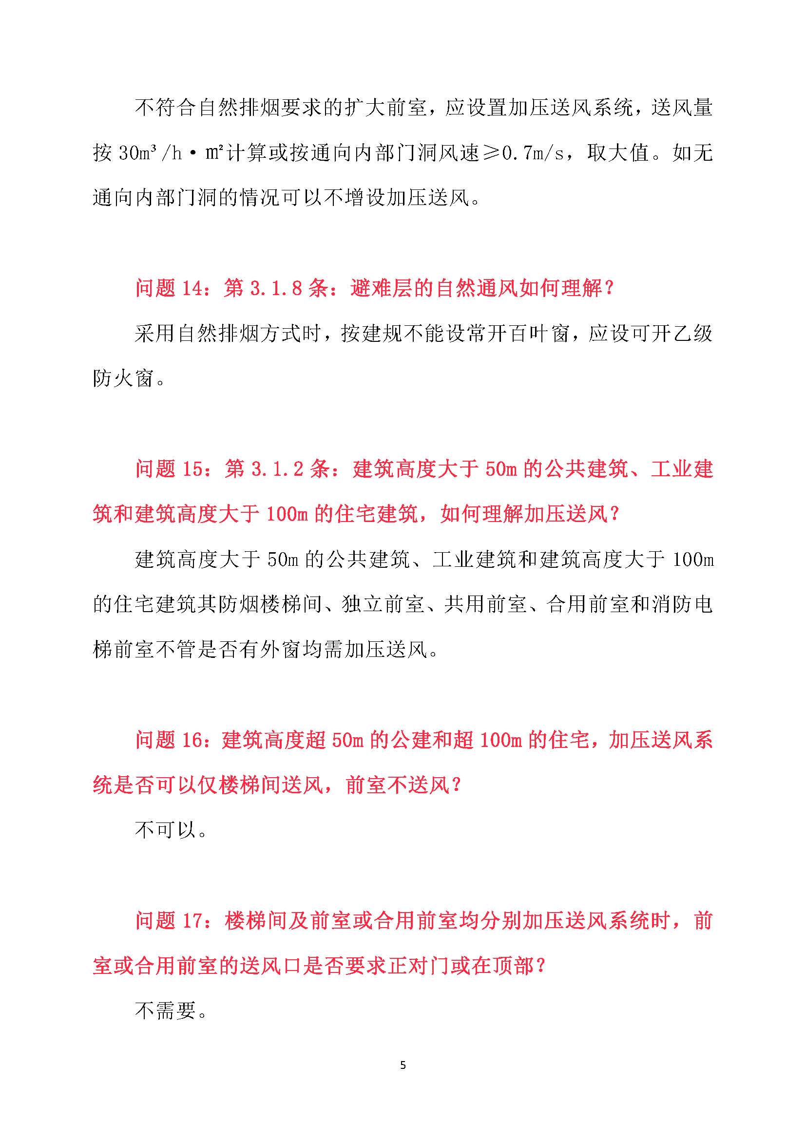 转《关于印发<建筑防烟排烟系统技术标准>问题释疑的通知》