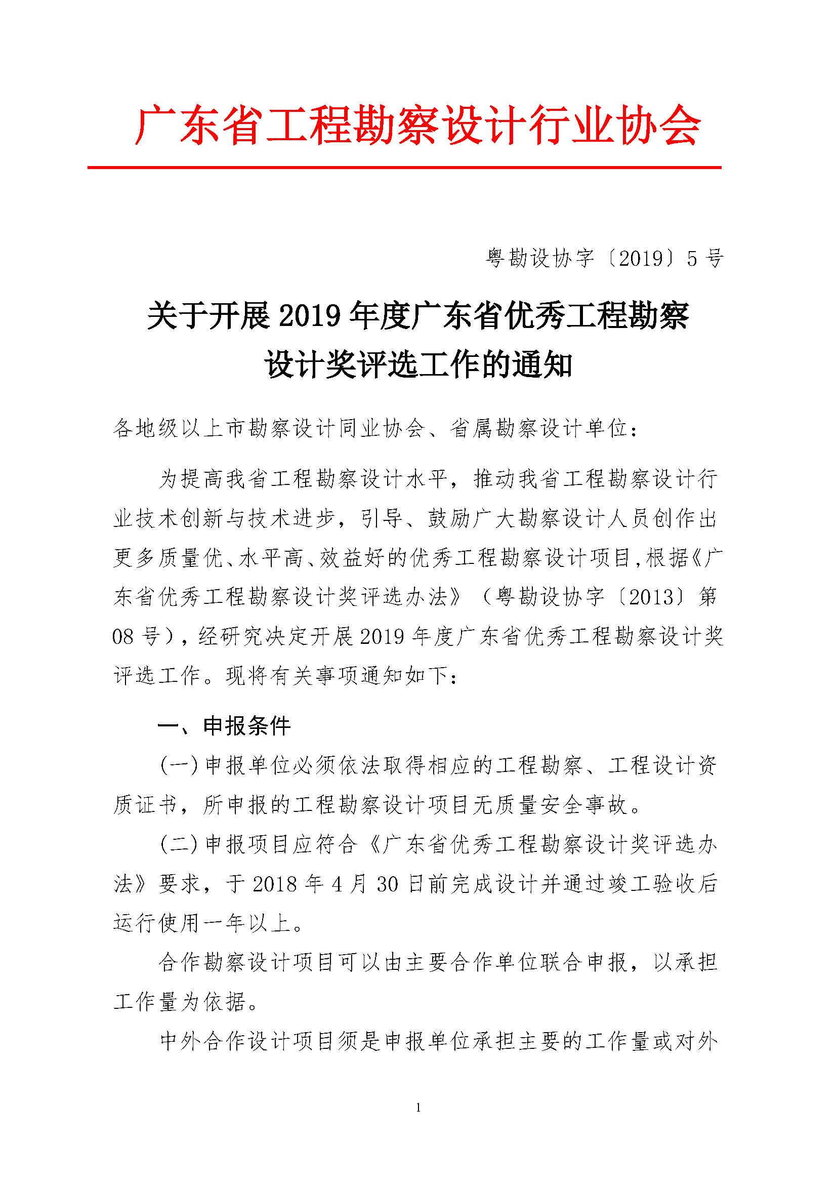 转《关于开展2019年度广东省优秀工程勘察设计奖评选工作的通知》