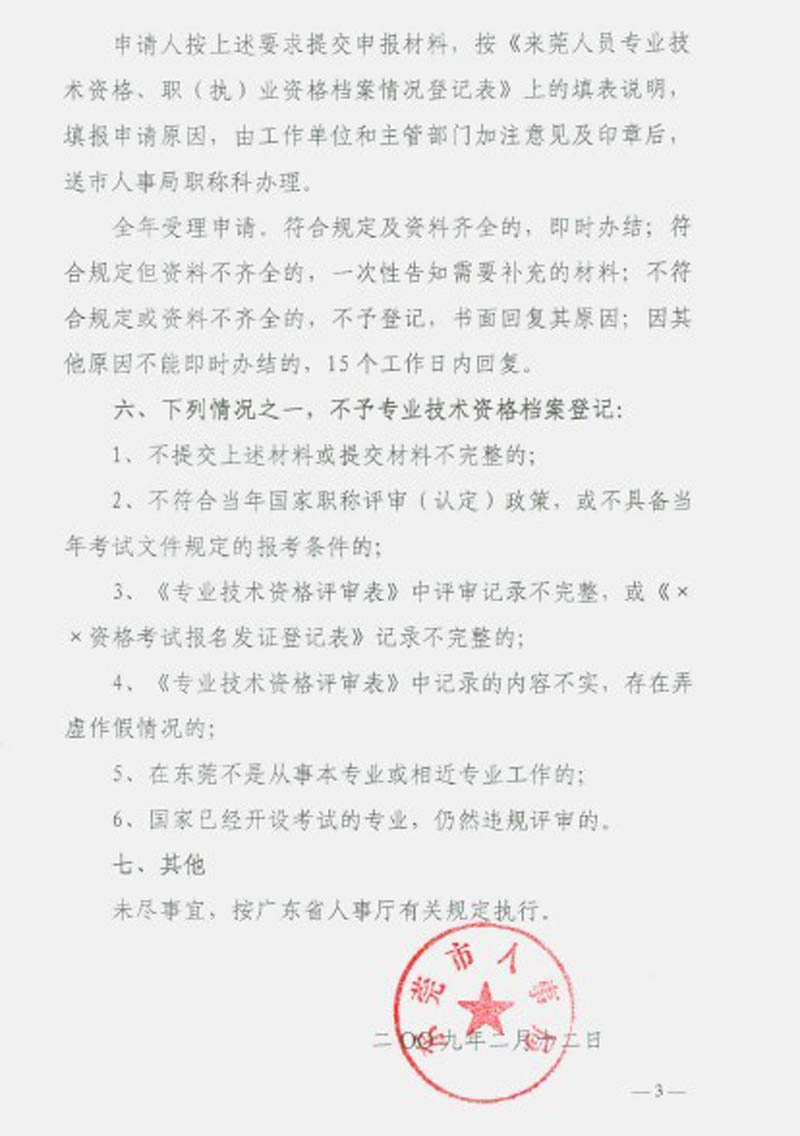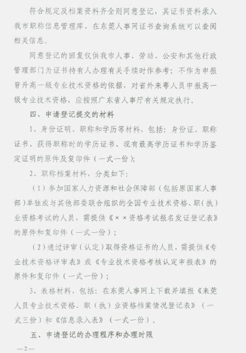 [转东莞市人事局]关于做好来莞专业技术资格档案情况登记工作的通知