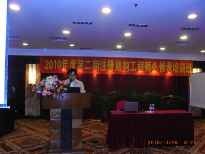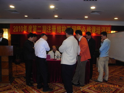 2010年度第二期注册结构师继续教育必修课培训班于在4月26日至30日东莞宏远酒店成功开班,全省各地参加此次培训班的一、二级注册结构师共200余人,其中东莞市勘察设计协会会员40多人,绝大多数学员遵守培训纪律,完成了规定学时的培训任务。东莞市勘察设计协会作为协办单位全程参与并配合此次培训的有关会务工作。